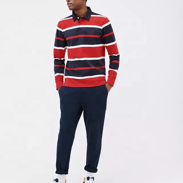Men 100% Cotton Multiple Color Striped Long Sleeves Rugby Polo Shirt for Men Custom Embroidered Logo