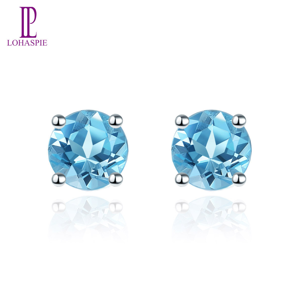925 Sterling Silver Stud Earrings for Women's Gift Cute Sky Blue Topaz Genuine