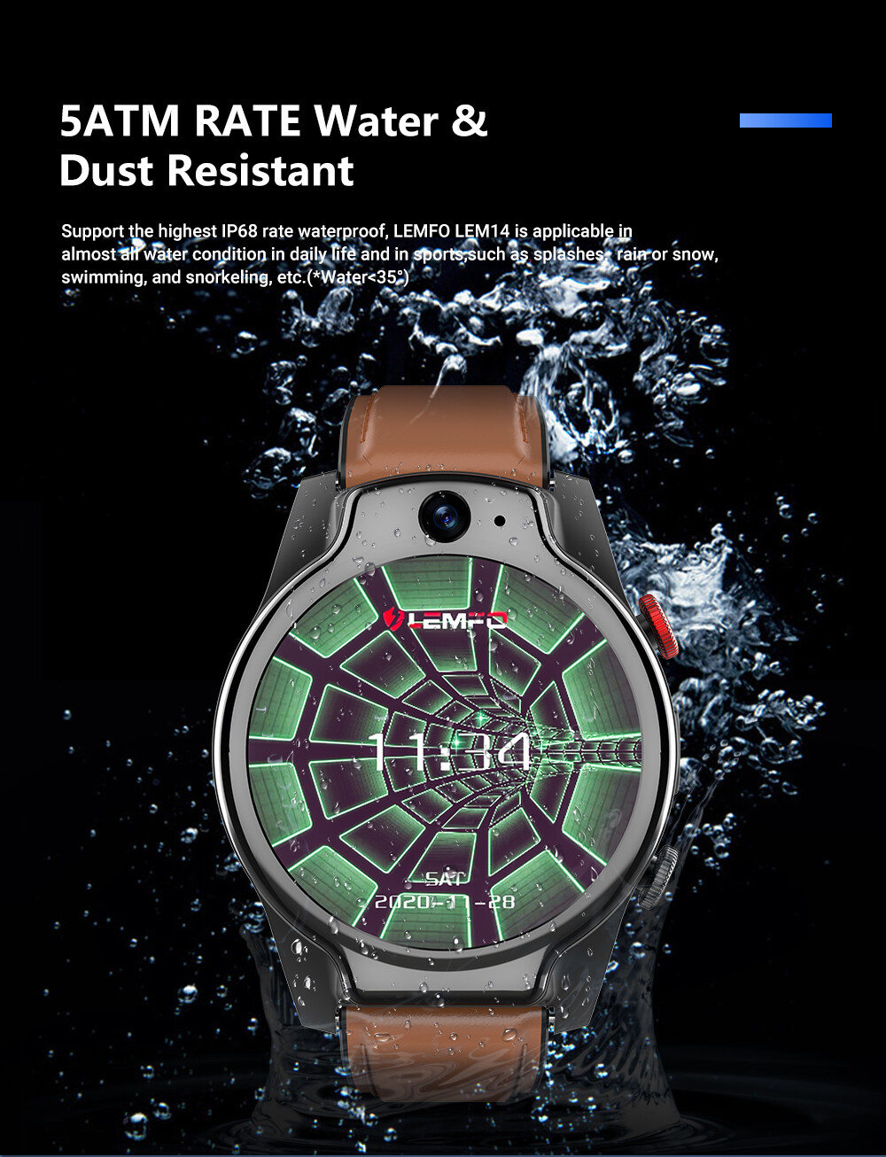 * Waterproof 5ATM: Support the highest IP68 waterproof, LEM14 is applicable in almost all water condition in daily life and in sports, such as splashes rain or snow, swimming and snorkeling, etc