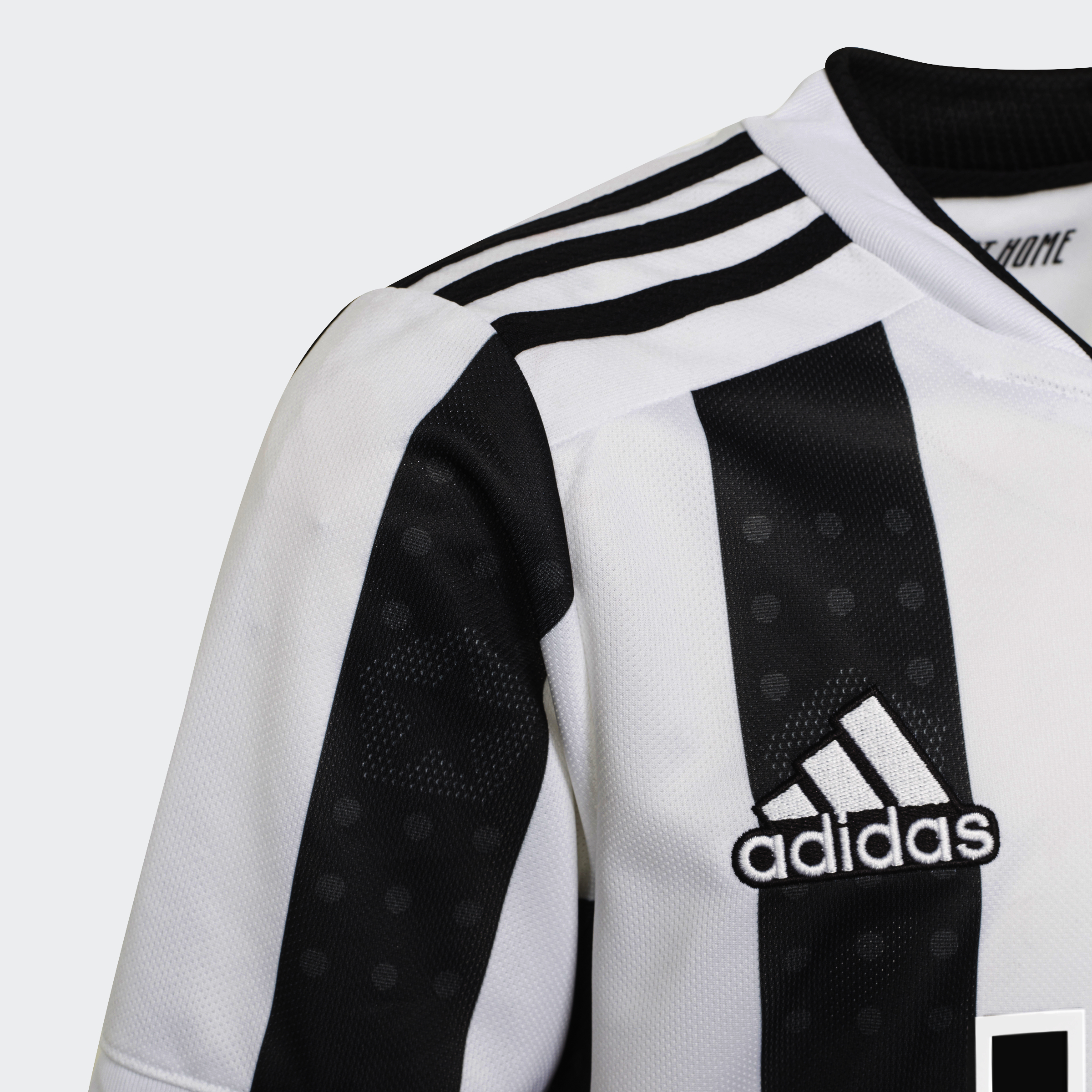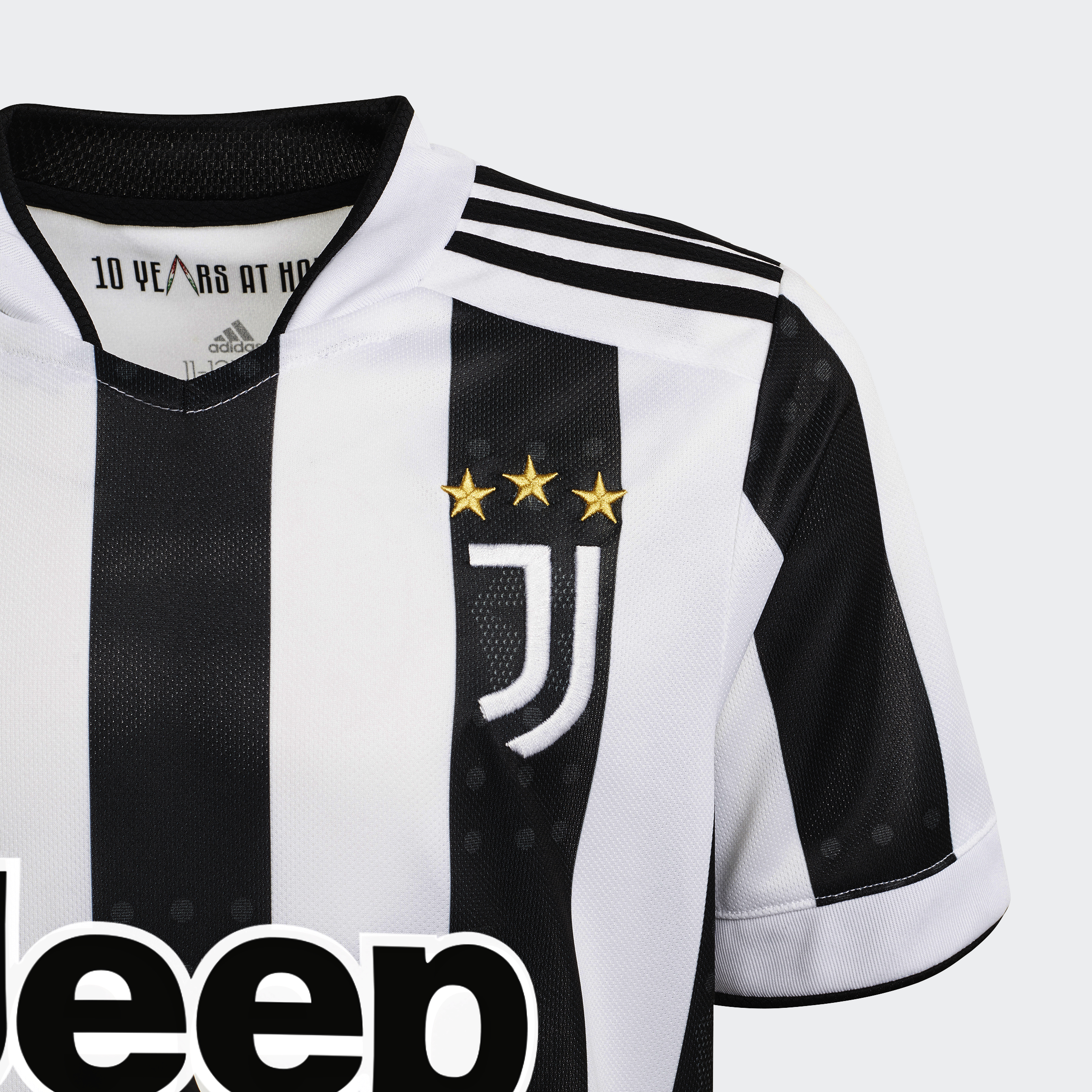 A tribute to their star-studded home. This juniors' adidas Juventus jersey celebrates the tenth anniversary of the club's iconic Allianz Stadium. The stars that dominate the building's design are fired onto its famous black stripes to add some extra style to a classic look. Soft fabric and moisture-wicking AEROREADY combine to keep fans comfortable. This product is made with Primegreen, a series of high-performance recycled materials.