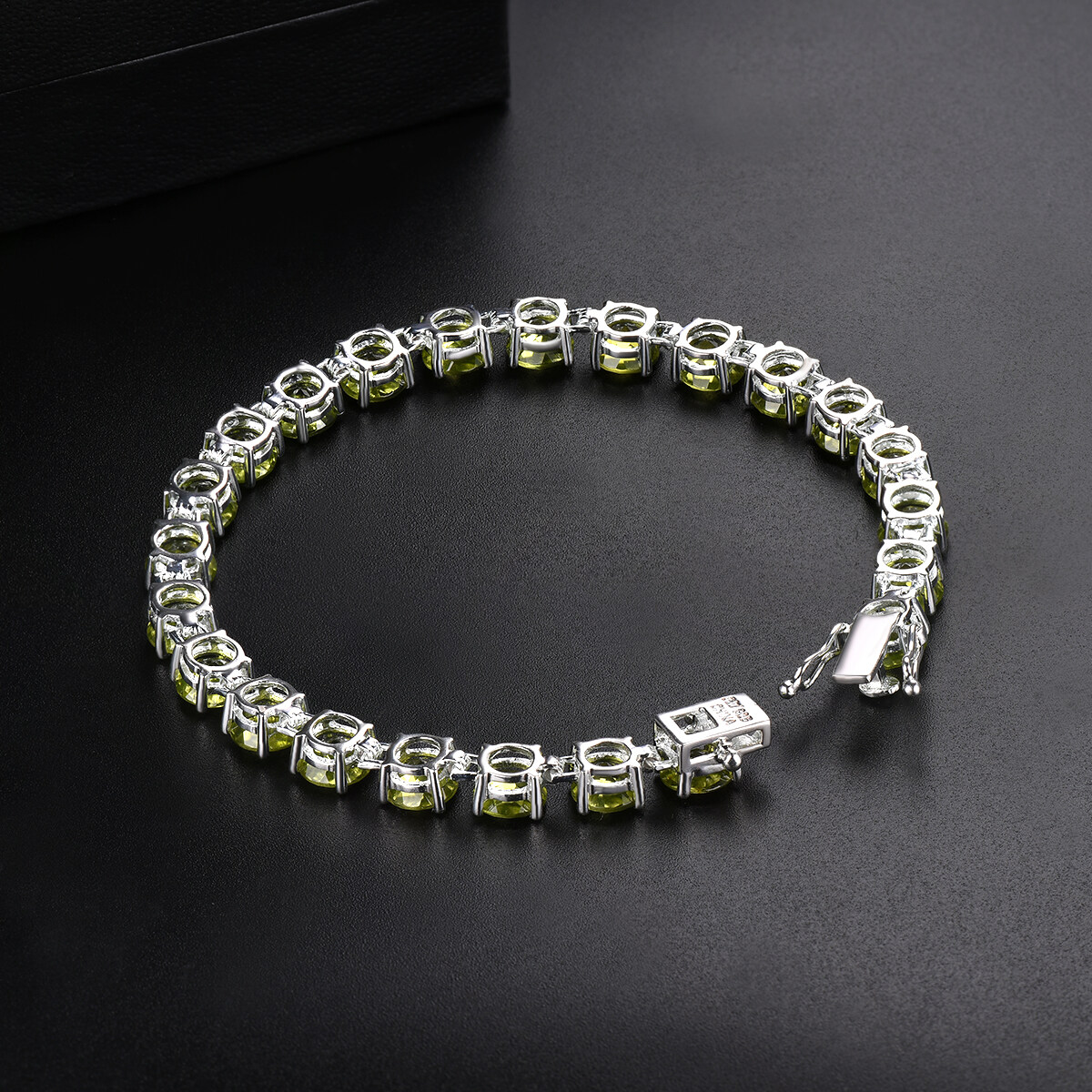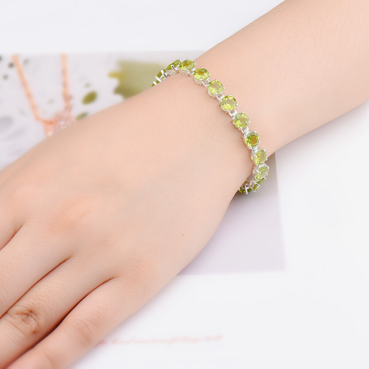 Natural Peridot 21.41Ct Gemstone Solid 925 Sterling Silver Chain Bracelet 7.25 Inch for Women Round 6mm Gemstone Fine Jewelry
