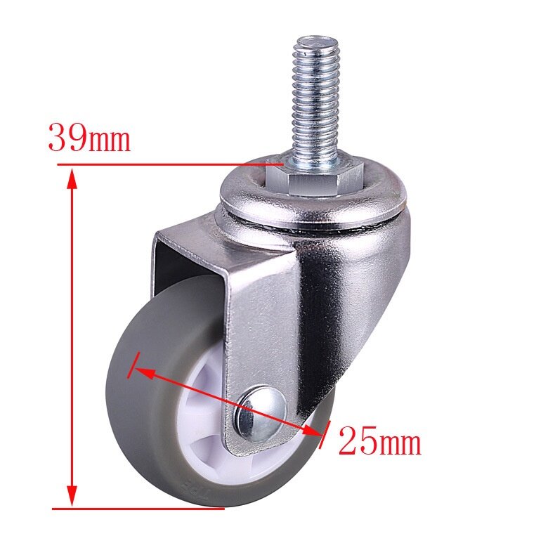 Brand Name:CMCL Certification:None Origin:CN(Origin) Type:Furniture Caster is_customized:Yes Model Number:E00114-M6 Item Number:1 Inch White Core Tpe M6 * 15 Silk Texture Of Material:Tpe To Turn To:Universal Casters Specifications:1 Inches Purpose:Furniture Casters Diameter:25 (mm) Maximum Load:8 (kg) Dead Weight:0.047kg Installation Height:39mm Bearing:Single Bearing Wheel Width:13mm Scope Of Application:Household, Electrical Appliances, Household Products, Medical Instrume Wheel Thickness:13 (mm) Colour:Gray Series:E Caster Series Screw Size:M6*15mm