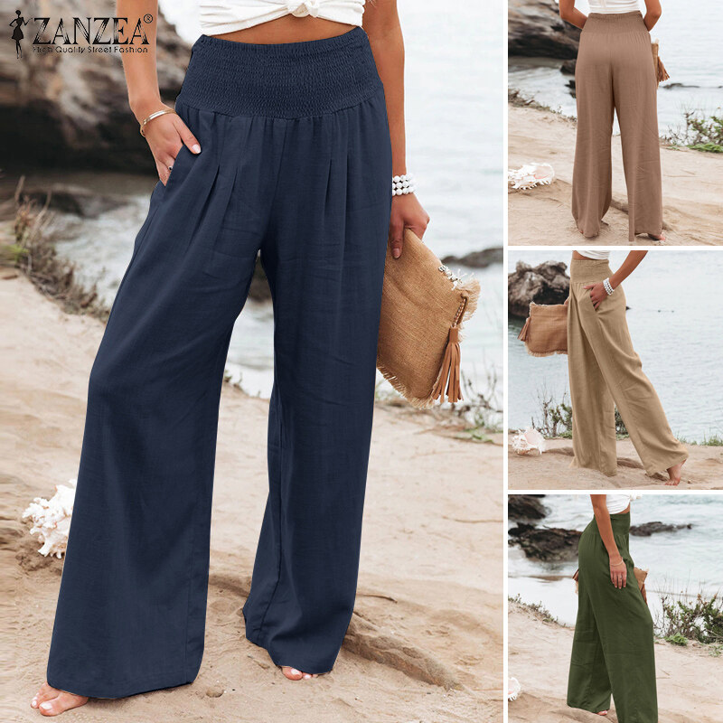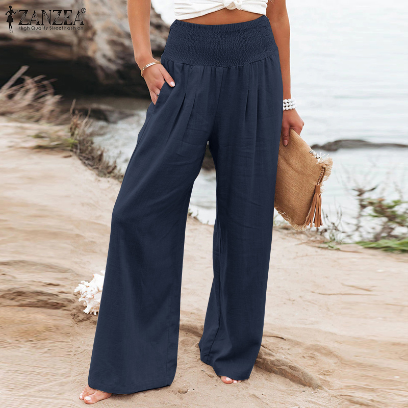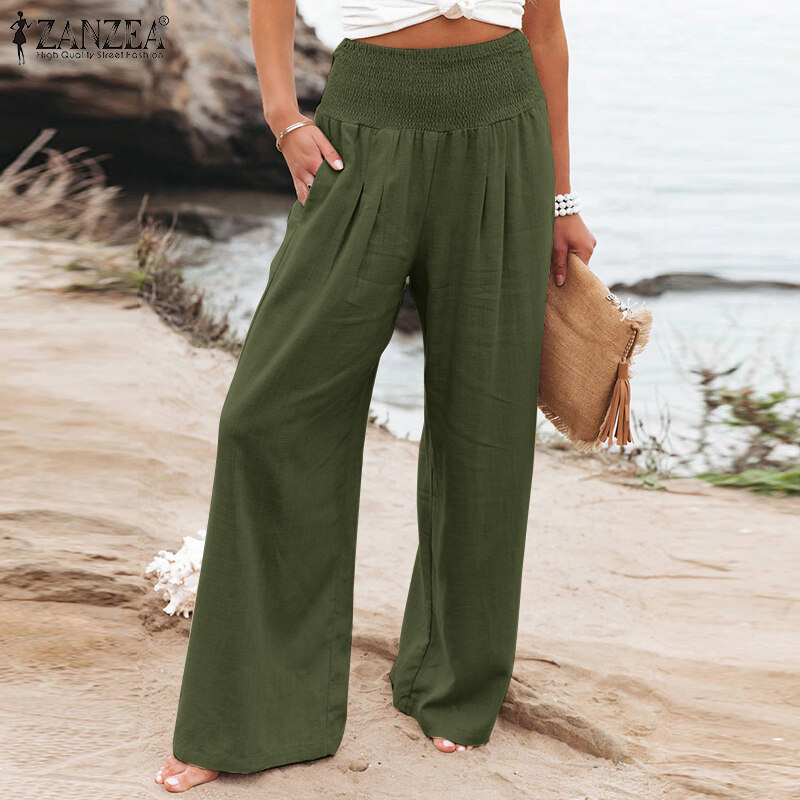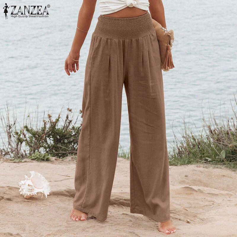 ZANZEA Women Business Office Chino Long Pants Corset Smocked Loose Trousers Slacks Plus