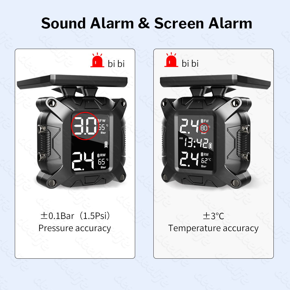 • 5 kinds of abnormal alarms to protect tires and drive safety