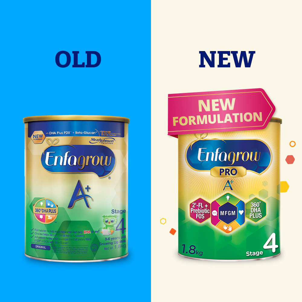 • With over 100 years of experience in pediatric nutrition, Mead Johnson Nutrition has scientifically formulated Enfagrow Pro A+ Stage 4 with a unique blend of nutrients that are important for overall mental and physical development.