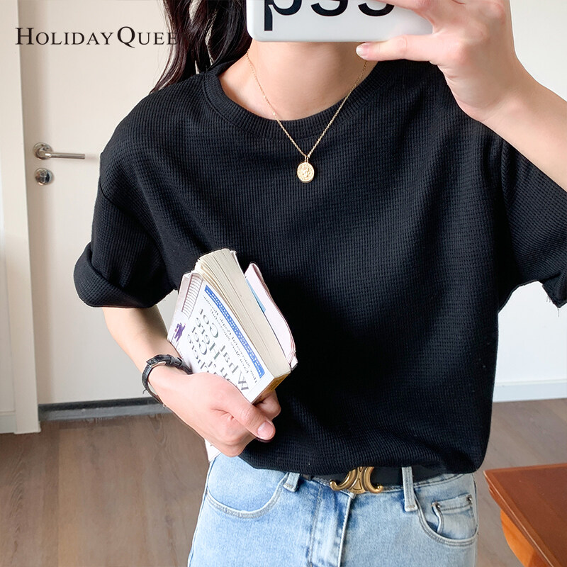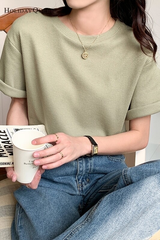 HolidayQueen Matcha Green Short-sleeved T-shirt Women's Korean Version 2022 Summer New Waffle Loose All-match Top S M L XL Free Shipping HQ1261