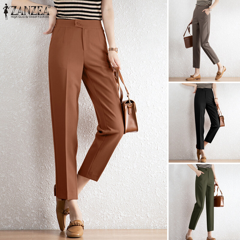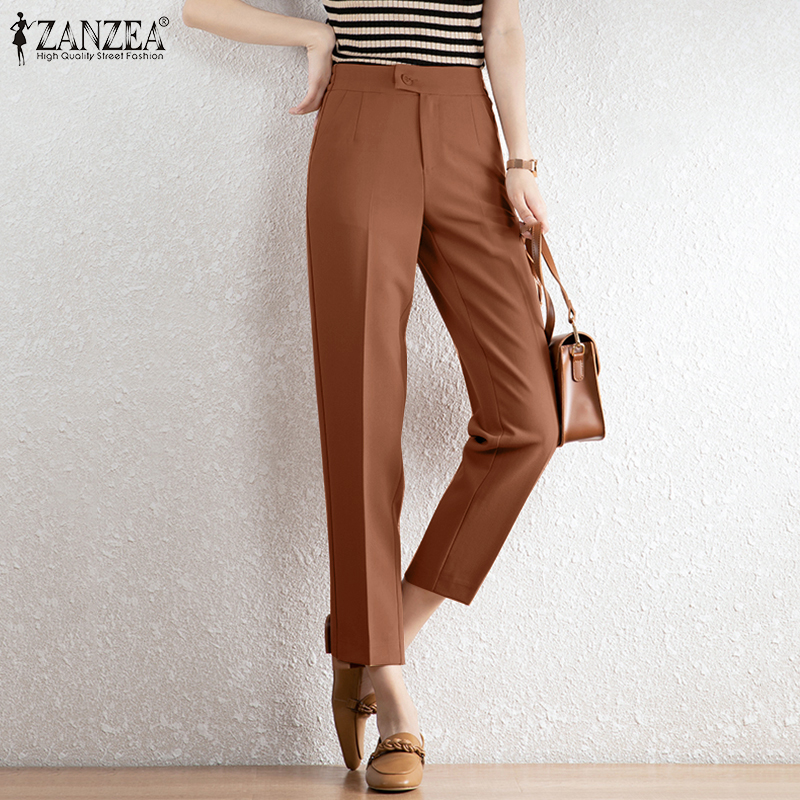ZANZEA Korean Style Women Office Ladies Pants Casual Elastic Waist Straight Trousers Slacks #10