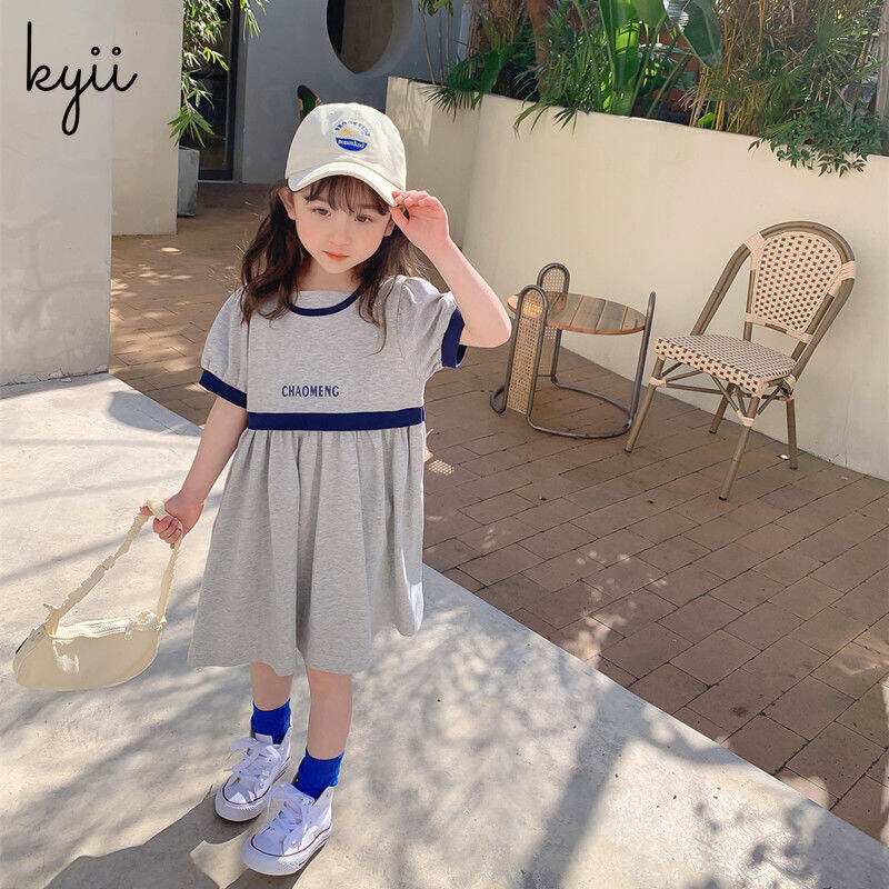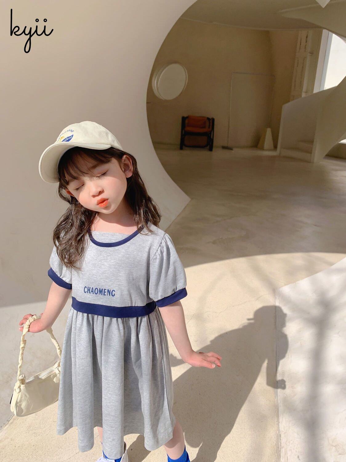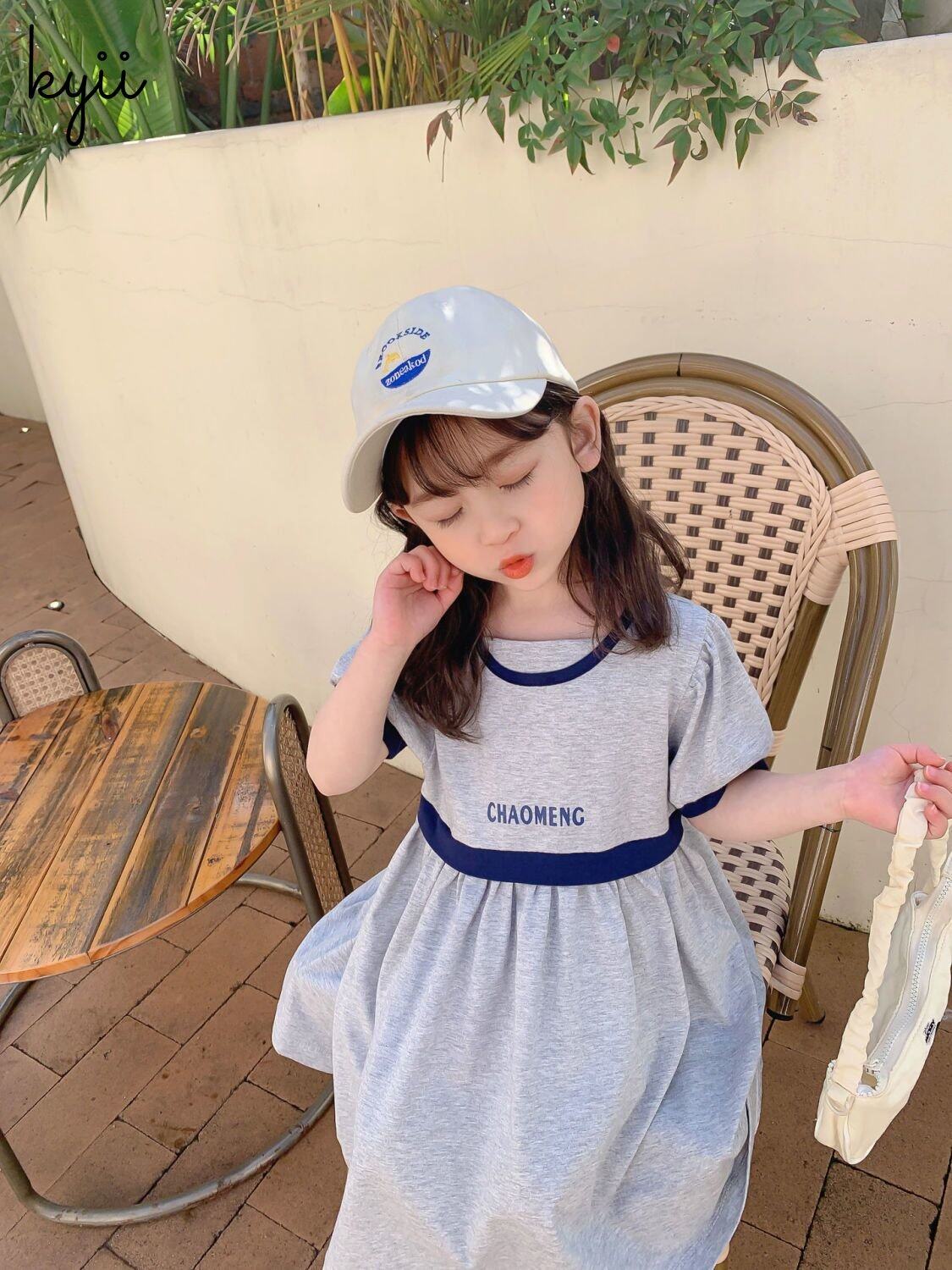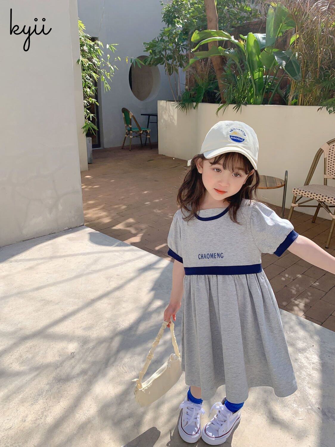 KYII Kids Girls Summer Round-neck Dress Casual Loose Dress kyii0064