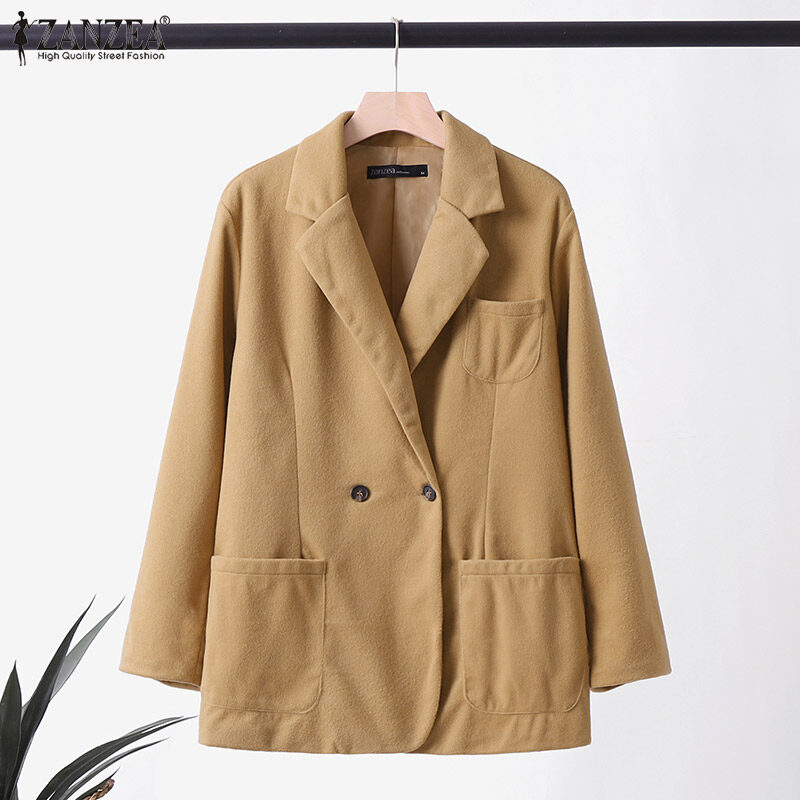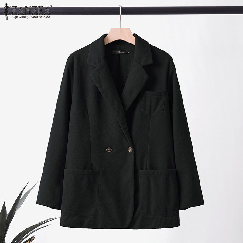 [Clearance Sale]ZANZEA Womens Business Long Sleeve Buttons Up Coat Formal Opent Front Jacket Plain Blazer #3 CLE