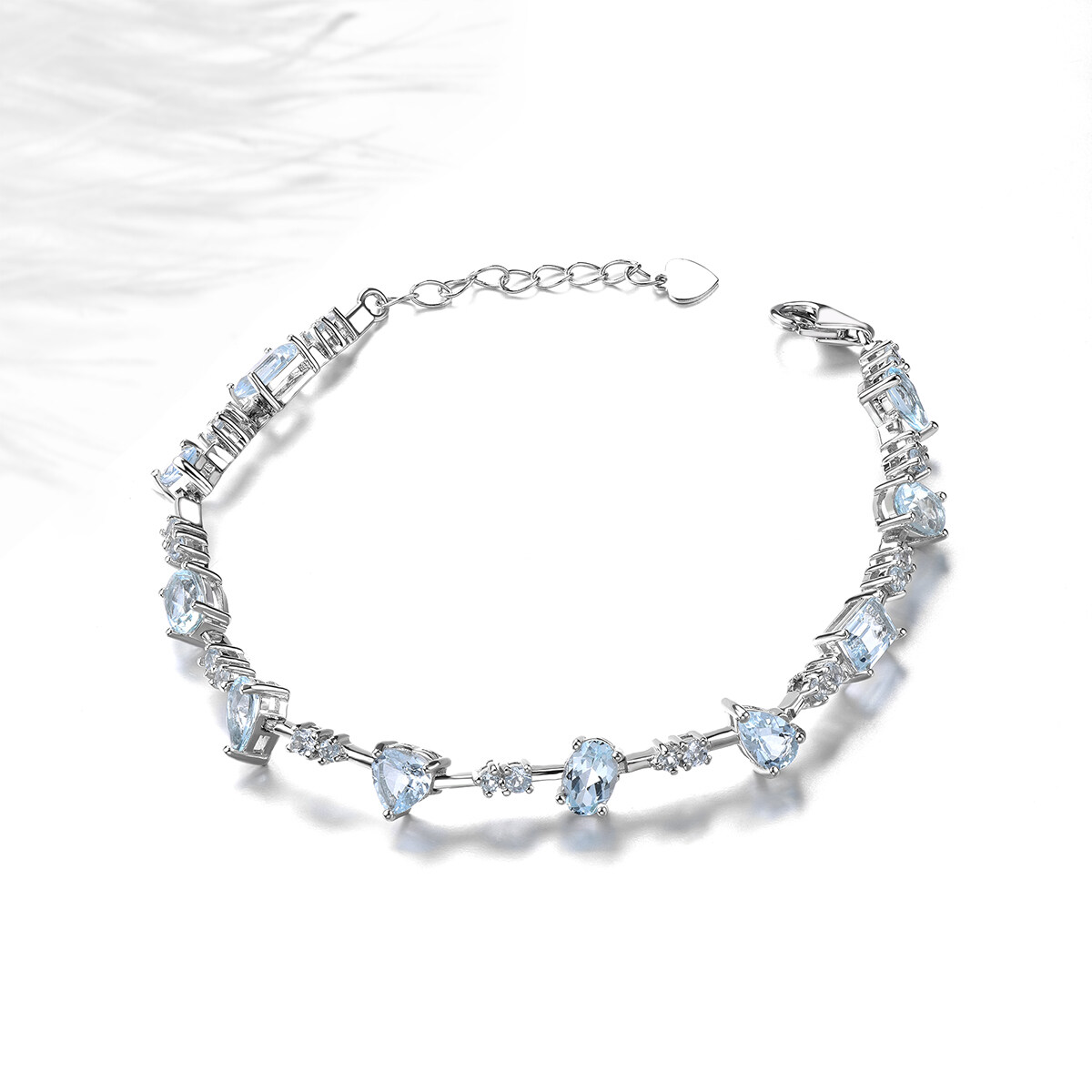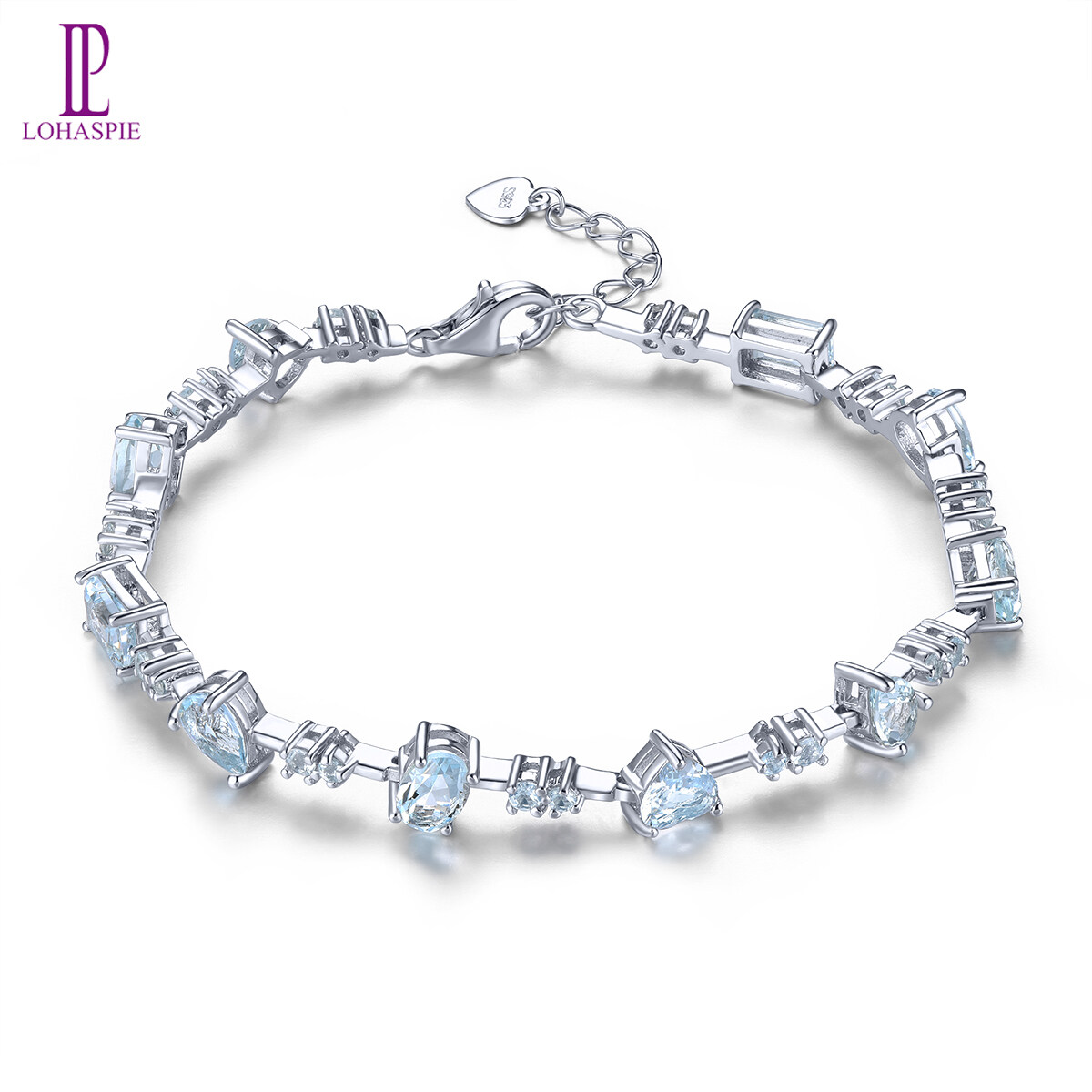 Lohaspie Jewelry Genuine 4.5 Carats Sterling Silver 925 Original Natural Aquamarine Bracelet Light Blue Gemstone Aquamarine Bracelet For Women Birthstone Jewelry