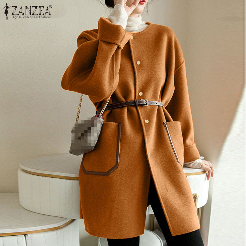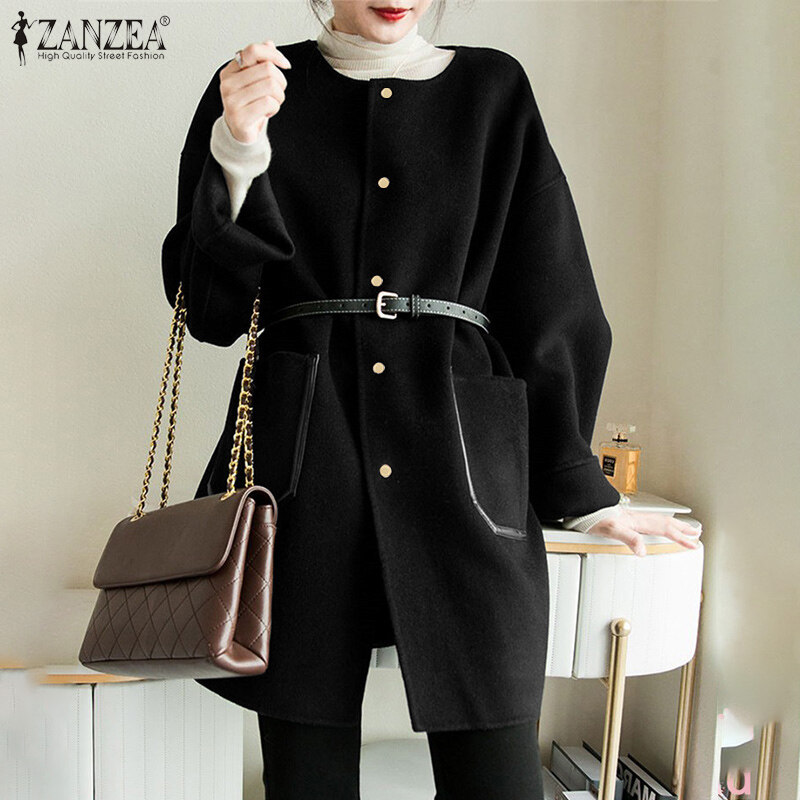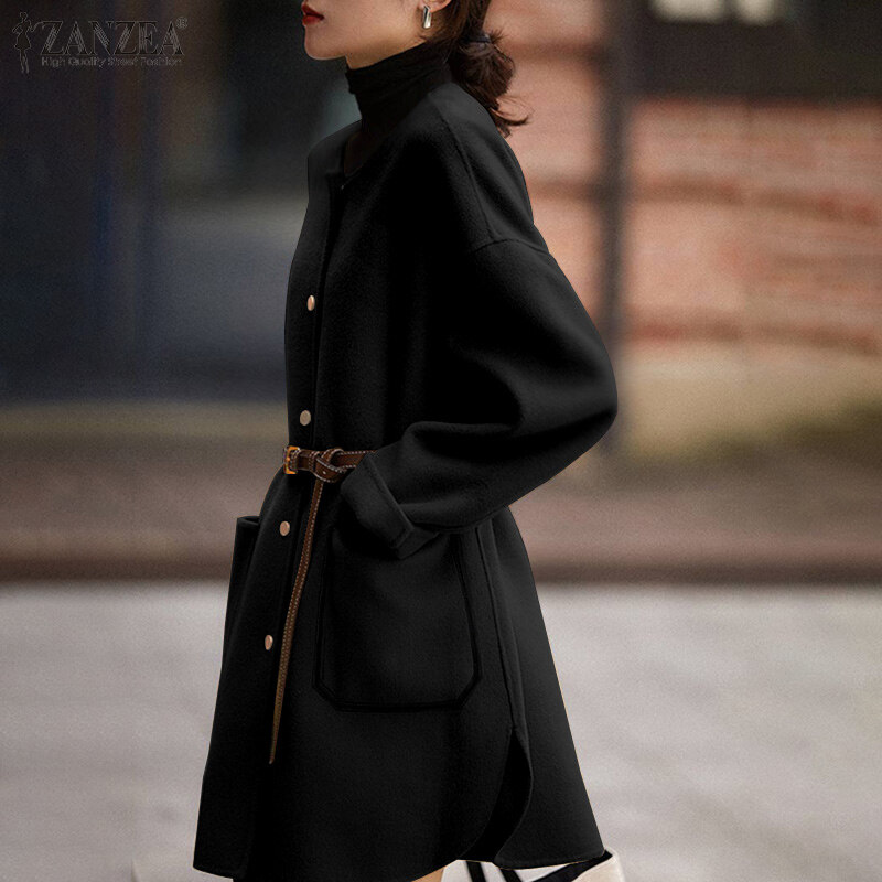 [Clearance Sale]ZANZEA Korean Style Womens Winter Overcoat Long Sleeve Baggy Coats Tunics Overcoat Plus Size #10 CLE