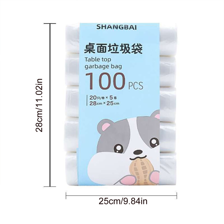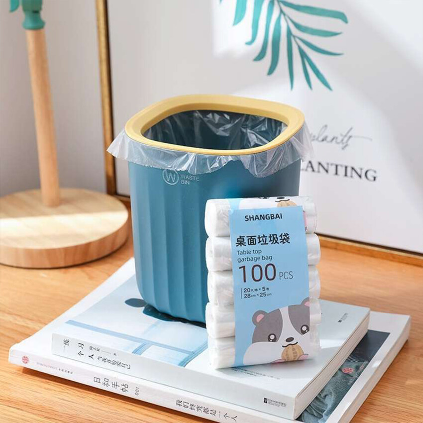 【Ready Stock】100pcs Small Trash Bags 5Rolls Mini Garbage Bag Household Thickened Small Desktop Garbage Can Garbage Bags Disposable Trash Bags Kitchen Tools
