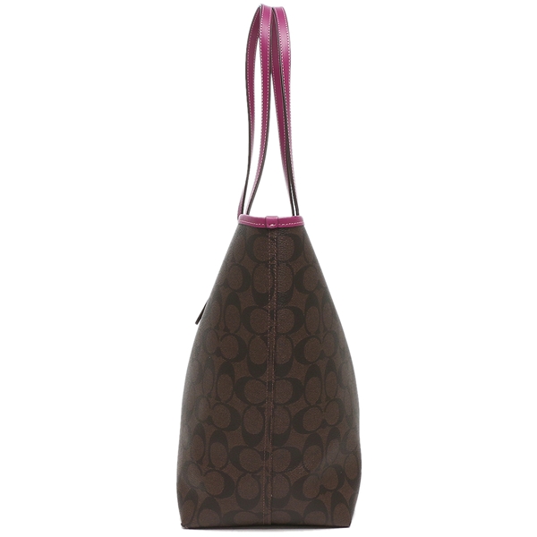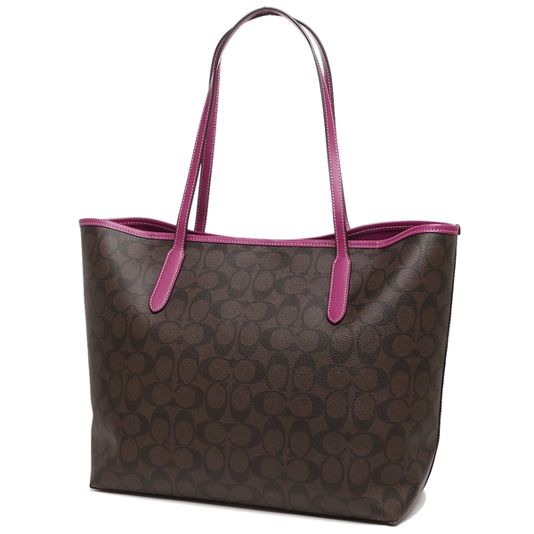 Coach Handbag Tote Shoulder Bag City Tote In Signature Canvas Brown Dark Magenta # 5696