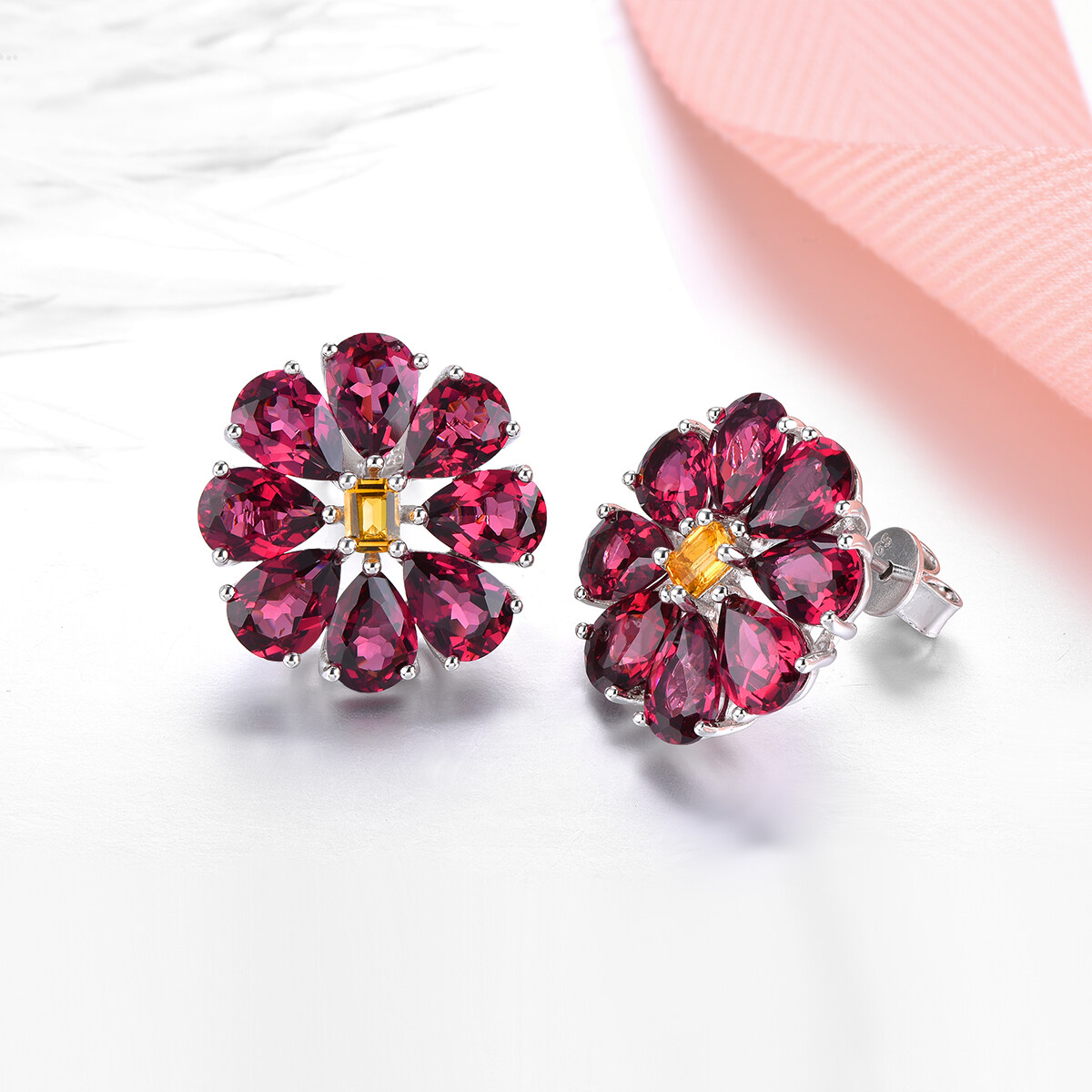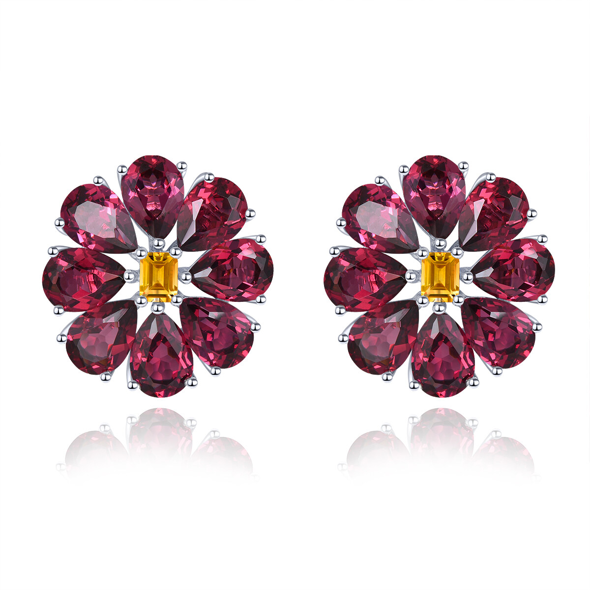 Lohaspie Jewelry Genuine 14 Carats Citrine Stone Original Stud Earring Silver 925 Natural Gemstone Jewellery Natural Rhodolite Rose Garnet Earring For Women Jewelry